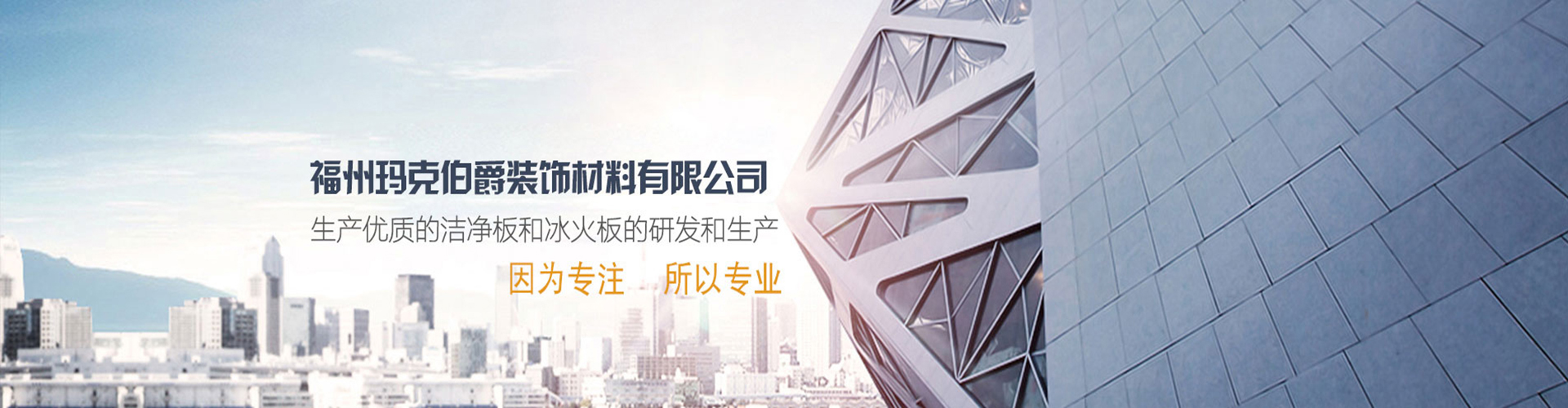 福州瑪克伯爵裝飾材料有限公司成立于2002年,是一家專業(yè)研發(fā)A級防火材料和生產內外墻可替代裝飾材料的公司,主要價格生產各類工程裝飾用品:冰火板、醫(yī)用抗菌板、保溫一體板、隧道板等,產品具有防火防水、綠色環(huán)保、無毒、無煙無排放、抗菌、A級防火等多項技術優(yōu)勢。